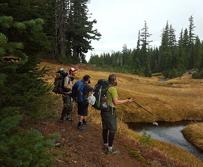 Beginning at Foley Ridge Trailhead, We will head out on a 20+ mile hike through the Sisters wilderness with packs weighing 55 pounds or less (optional), this is a peaceful walk through a dense conifer woods, and right around the bend are a few of the most beautiful views of the Sisters Range and a splendid open meadow complete with a freshwater spring. A short hike from the meadow to Lake Eileen and up to Obsidian Falls are a few features to fill your adventure.