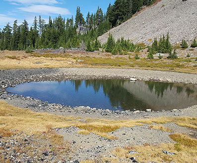 The trail passes by two lakes; Bonnie Lake and Karen Lake, before ending along the shore of Yoran Lake. From the lake's shore hikers get an incredible view of Diamond Peak less than a mile to the southwest and Mount Yoran even closer to the west of the lake. Well marked campsites with fire rings are spread out around Yoran Lake, and make a great option for people who just want to enjoy a short backpacking trip in the Southern Oregon Cascades.
