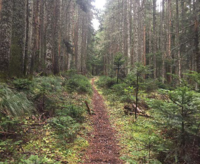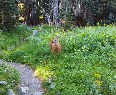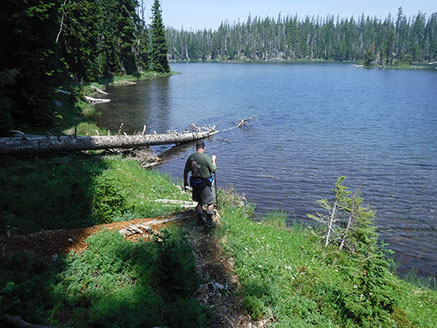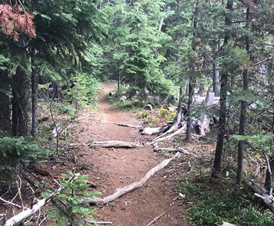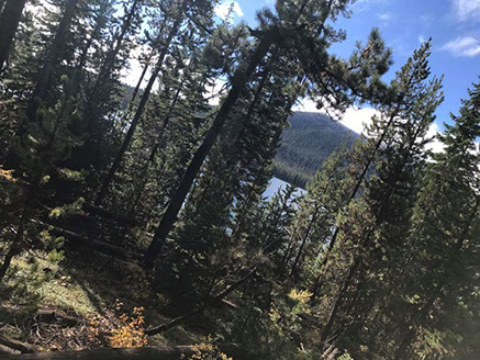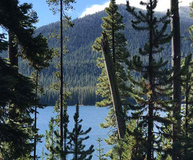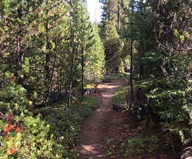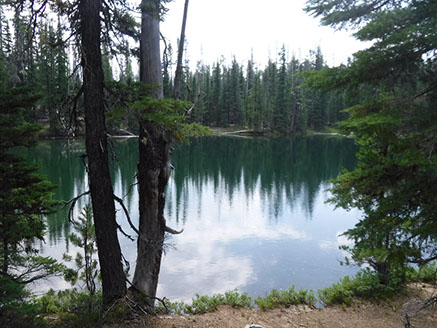 The hike to Yoran Lake from the trailhead, near Odell Lake, leads 4 miles, slightly uphill, through the Diamond Peak Wilderness. For its entirety, the well-marked trail goes through moss-covered lodgepole pine and Douglas fir. Occasional wildflowers, clumps of beargrass and the sound of birds accompanies the hike in what is otherwise an uncrowded and quiet forest on the northeast side of Diamond Peak.