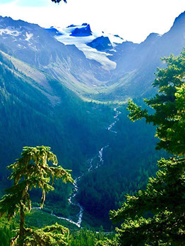 The Hoh River Trail is nestled in the Pacific Northwest's Olympic National Park and leads to the Mount Olympus Blue Glacier. This trail is in one of the wettest regions in the lower 48 states and is known for its spectacular temperate rainforest, subalpine meadows and montane forest.